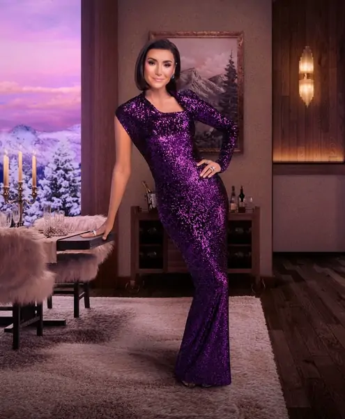 Bronwyn Newport on The Real Housewives of Salt Lake City on Bravo was spotted wearing this sequin promo dress on The Real Housewives of Salt Lake City on episode 'Hot Dogs and Hearsay' (6x01) in Sep 2025. Bronwyn's Dress is the Susi One-sleeve Cutout Sequined Tulle Gown by Nervi.
