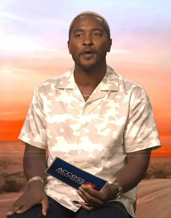 Scott Evans on Access Hollywood on NBC was spotted wearing this camo print shirt on Access Hollywood on Sep 18 2025's episode. Scott's Shirt is the Regular-Fit Camouflage Button-Down Camp Shirt.
