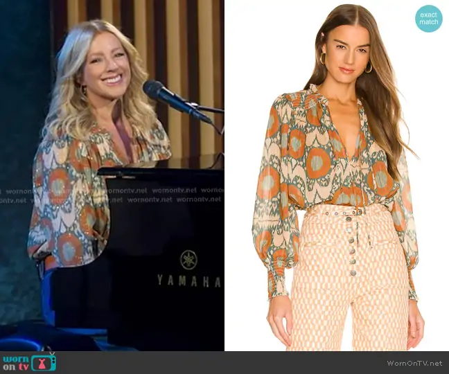 Ulla Johnson Anita Blouse in Nimbus worn by Sarah McLachlan on Good Morning America