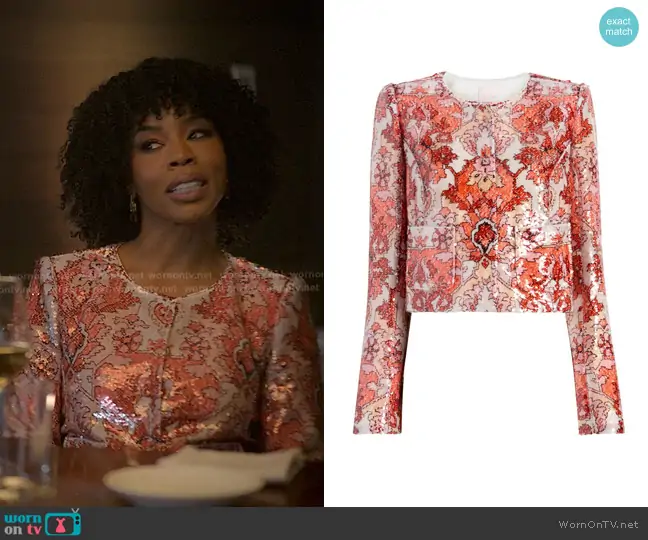 Monica Wilson (played by Brandee Evans) on Reasonable Doubt on Hulu was spotted wearing this sequin floral jacket on Reasonable Doubt on episode 'Feelin' It' (3x01) in Sep 2025. 's Jacket is the Sequin-embellished Tweed Jacket by Cinq A Sept.