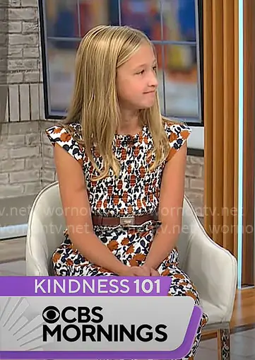 on CBS Mornings on CBS was spotted wearing this brown floral dress on CBS Mornings on Sep 19 2025's episode. 's Dress is the Carolina Smocked Midi Dress in Cognanc Floweret Vine by Boden .