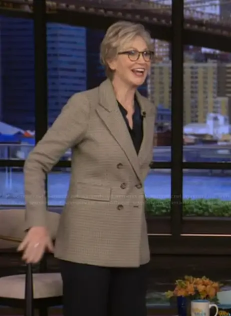 on Live with Kelly and Mark on Disney ABC Home Entertainment was spotted wearing this check print blazer on Live with Kelly and Mark on Sep 22 2025's episode. 's Blazer is the The Phoebe Blazer by Favorite Daughter.