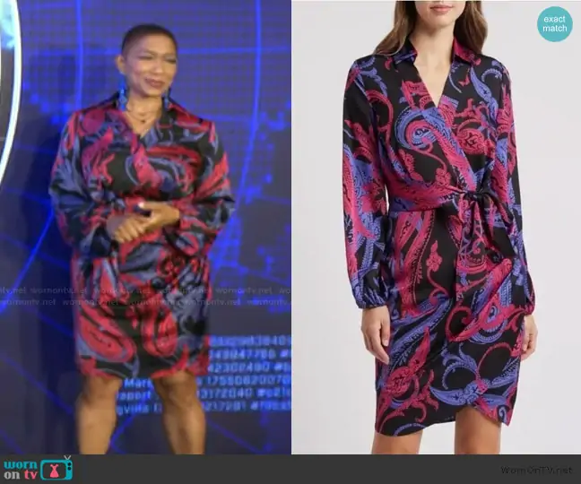 Deja Vu on Live with Kelly and Mark on Disney ABC Home Entertainment was spotted wearing this paisley print wrap dress on Live with Kelly and Mark on Sep 24 2025's episode. Deja Vu's Dress is the Paisley Print Wrap Dress by Tahari ASL.