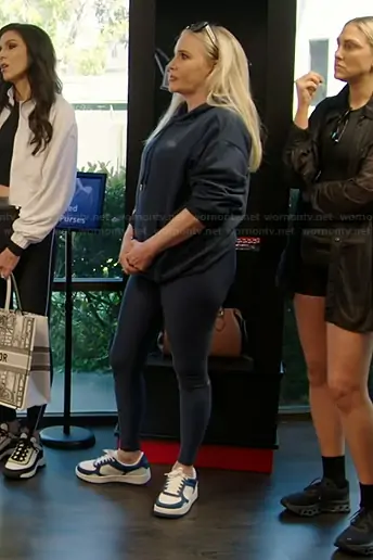 Shannon Beador on The Real Housewives of Orange County on Bravo was spotted wearing this navy hoodie and leggings on The Real Housewives of Orange County on episode 'Defense Is the Best Offense' (19x12) in Sep 2025. Shannon's Sweater is the Accolade Hoodie by Alo . Shannon's Leggings is the High-Waist Airlift Legging by Alo.