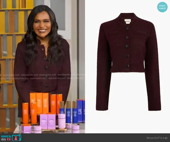 on Good Morning America on ABC was spotted wearing this burgundy jacket and mini skirt on Good Morning America on Sep 30 2025's episode. 's Jacket is the Ello Jacket in Dark Plum by Khaite . 's Skirt is the Jett Skirt in Almandine by Khaite.