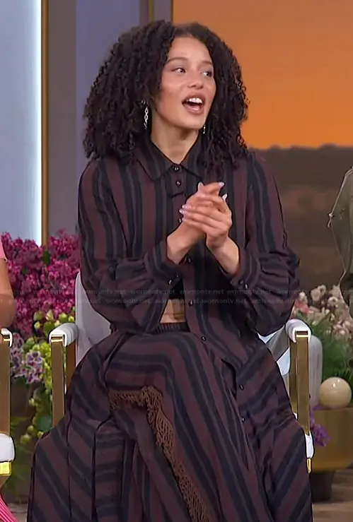 on The Jennifer Hudson Show on FOX was spotted wearing this striped top and pants on The Jennifer Hudson Show on Sep 22 2025's episode. 's Top is the Striped Blouse by Diotima . 's Pants is the Striped Pants by Diotima.