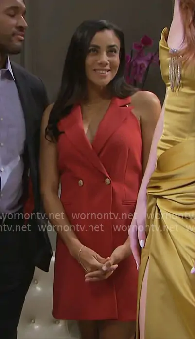 Daphne Rose (played by Murielle Hilaire) on The Bold and the Beautiful on CBS was spotted wearing this red blazer dress on The Bold and the Beautiful on Sep 30 2025's episode.