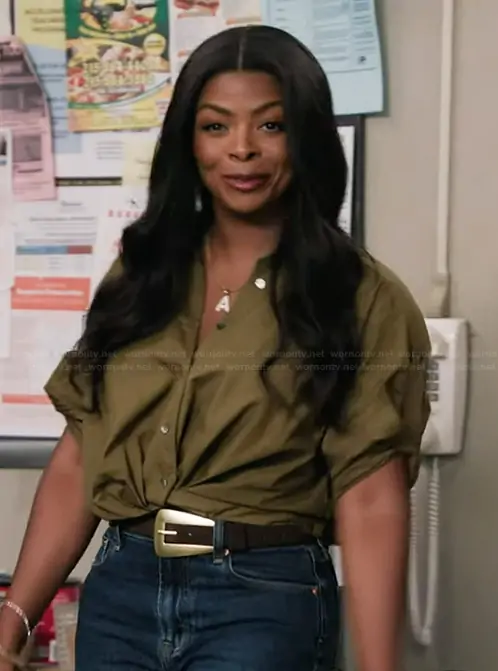 Ava Coleman (played by Janelle James) on Abbott Elementary on ABC was spotted wearing this mustard twist front top on Abbott Elementary on episode 'Team Building' (5x01) in Oct 2025. Ava's Top is the Leo Cropped Cotton Shirt by A.L.C. . Ava's Belt is the Modern Western Belt by Anthropologie.