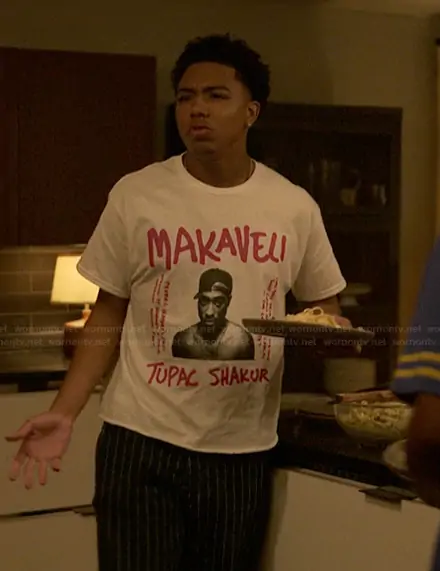 Spenser Stewart (played by Thaddeus J. Mixson) on Reasonable Doubt on Hulu was spotted wearing this Tupac graphic tee on Reasonable Doubt on episode 'Friend or Foe' (3x04) in Oct 2025. 's Shirt is the Oversized Tupac license t-shirt by Boohoo.