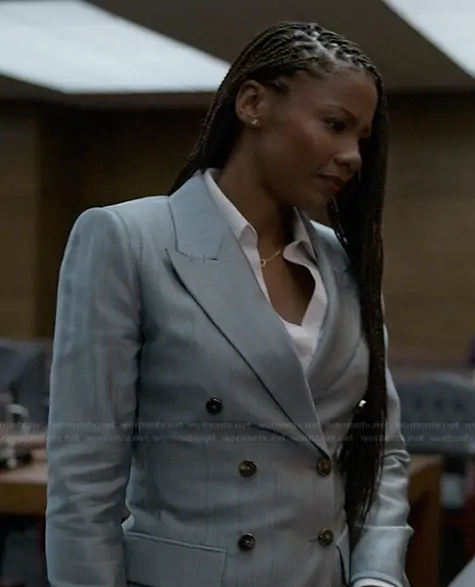 Jax Stewart (played by Emayatzy Corinealdi) on Reasonable Doubt on Hulu was spotted wearing this blue double breasted blazer on Reasonable Doubt on episode 'Friend or Foe' (3x04) in Oct 2025. Jax's Blazer is the Textured Viscose Double-Breasted Blazer by Giogio Armani.