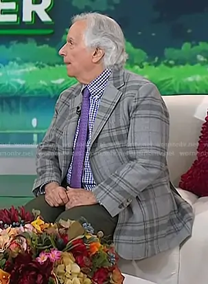 on Today on NBC was spotted wearing this grey plaid blazer on Today on Oct 02 2025's episode. 's Jacket is the Hadley Hand-Tailored Plaid Wool Jacket by Ralph Lauren Purple Label.