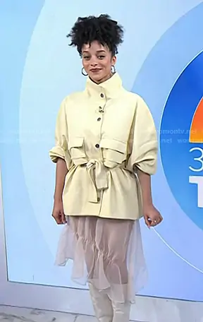 on Today on NBC was spotted wearing this Ivory jacket and pink tulle skirt on Today on Oct 02 2025's episode. 's Outfit is the Resort 2026 Collection by 3.1 Phillip Lim.