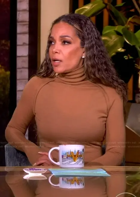 Sunny Hostin on The View on ABC was spotted wearing this brown turtleneck sweater on The View on Oct 02 2025's episode. Sunny's Sweater is the High Neck Top in Camel by Victoria Beckham.
