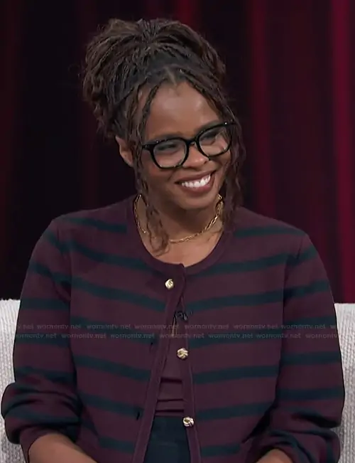 on Access Hollywood on NBC was spotted wearing this striped cardigan on Access Hollywood on Oct 02 2025's episode. 's Sweater is the Stripe Cardigan by Scotch & Soda.