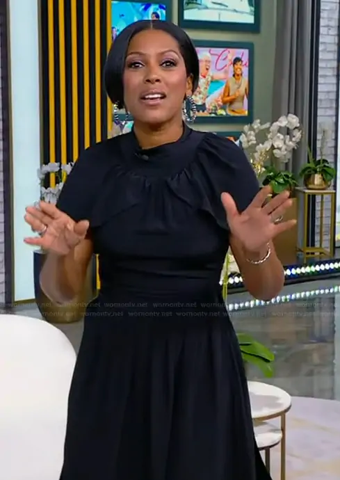Tamron Hall on Tamron Hall Show on ABC was spotted wearing this black cape dress on Tamron Hall Show on Oct 02 2025's episode. Tamron's Dress is the Cape Mini Dress by Arias New York.