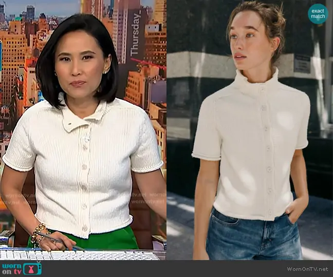 Vicky Nguyen on NBC News Daily on NBC was spotted wearing this white short sleeve cardigan and green pants on NBC News Daily on Oct 02 2025's episode. Vicky's Sweater is the Short Sleeve Cardigan in Ecru by Zara . Vicky's Pants is the Wide Leg Pants in Green by Aqua.