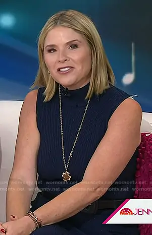 Jenna Bush Hager on Today on NBC was spotted wearing this navy ribbed dress on Today on Oct 03 2025's episode. Jenna's Dress is the Skylar Knit Dress by Retrofete.