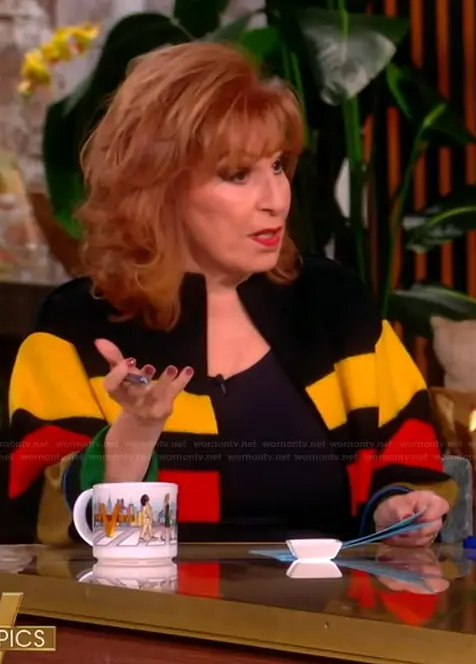 Joy Behar on The View on ABC was spotted wearing this striped jacket on The View on Oct 03 2025's episode. Joy's Jacket is the Pearson Stripe Wool Jacket by Alice + Olivia.