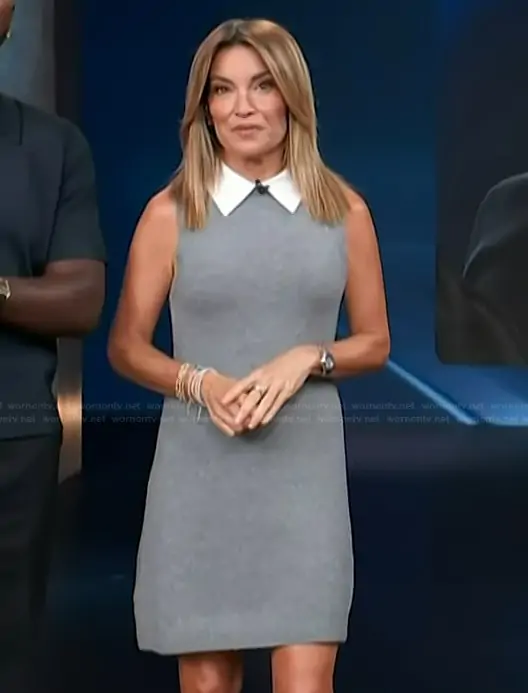 Kit Hoover on Access Hollywood on NBC was spotted wearing this gray sleeveless mini dress on Access Hollywood on Oct 13 2025's episode. Kit's Dress is the Vhari Sleeveless Mini Sweater Dress by French Connection.
