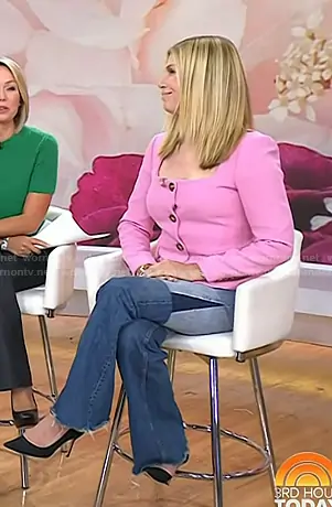 Jill Martin on Today on NBC was spotted wearing this pink square neck blazer and jeans on Today on Oct 06 2025's episode. Jill's Jacket is the Ria Jacket by Veronica Beard . Jill's Pants is the Paneled Mid-Rise Jeans by Chloe.