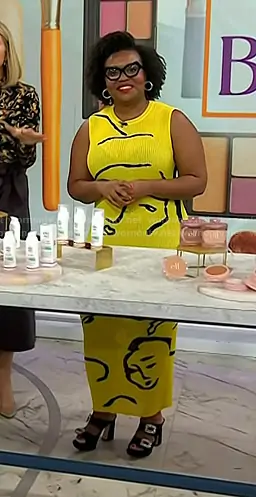 on Today on NBC was spotted wearing this yellow face print dress on Today on Oct 06 2025's episode. 's Dress is the Spring 2023 Collection by Zankov.