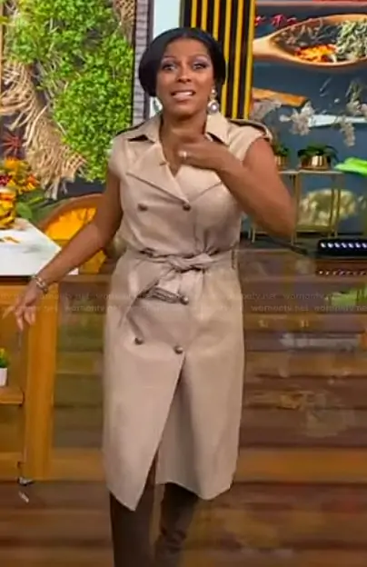 Tamron Hall on Tamron Hall Show on ABC was spotted wearing this belted trench dress on Tamron Hall Show on Oct 06 2025's episode. Tamron's Dress is the Val Dress by Kobi Halperin . Tamron's Earrings is the Metal-Disc Pendant Earrings by H&M.