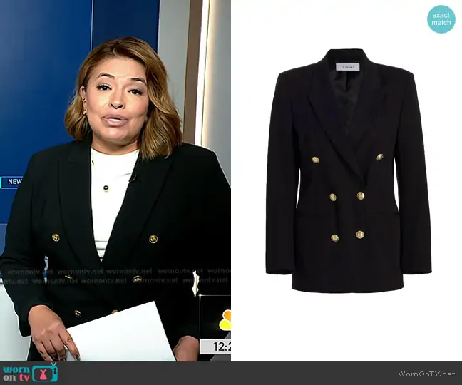Derek Lam 10 Crosby Walter Double-Breasted Jacket in Black worn by Gilma Avalos on NBC News Daily