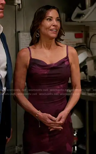 Debbie Siebers on The Golden Bachelor on ABC was spotted wearing this purple floral cowl neck dress on The Golden Bachelor on episode 'Week 3' (2x03) in Oct 2025. Debbie's Dress is the Floral Spaghetti Strap Maxi Dress by Pretty Garden.