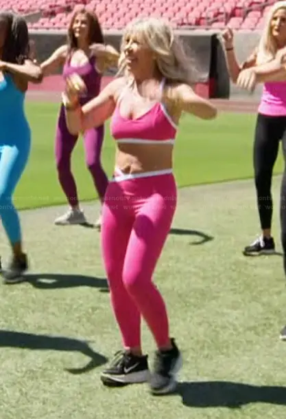 Amy on The Golden Bachelor on ABC was spotted wearing this pink sports bra and leggings on The Golden Bachelor on episode 'Week 1 Week 2' (2x01) in Sep 2025. Amy's Top is the Spacedye Outlines Bra by Beyond Yoga . Amy's Leggings is the Spacedye Outlines High Waisted Midi Legging by Beyond Yoga.