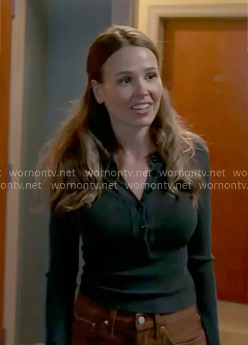 Lyla Novak (played by Jocelyn Hudon) on Chicago Fire on NBC was spotted wearing this grey ribbed henley top on Chicago Fire on episode 'Primary Search' (14x02) in Oct 2025. Lyla's Top is the Varra Henley in Charcoal Mineral by Citizens of Humanity.