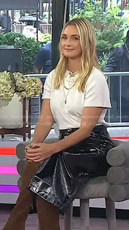 on Today on NBC was spotted wearing this black leather skirt on Today on Oct 08 2025's episode. 's Skirt is the Vegan Leather Midi Skirt by Gap.