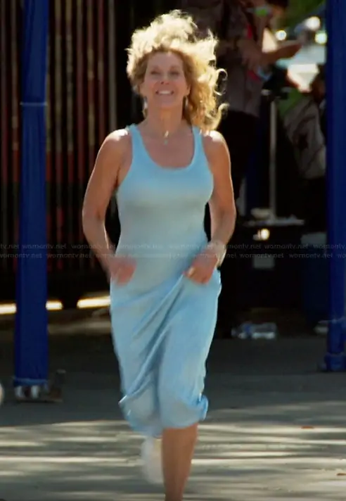 Peg Munson on The Golden Bachelor on ABC was spotted wearing this blue metallic midi dress on The Golden Bachelor on episode 'Week 4' (2x04) in Oct 2025. Peg's Dress is the Ana Dress in Baia Blue Sequin by Asta Resort.