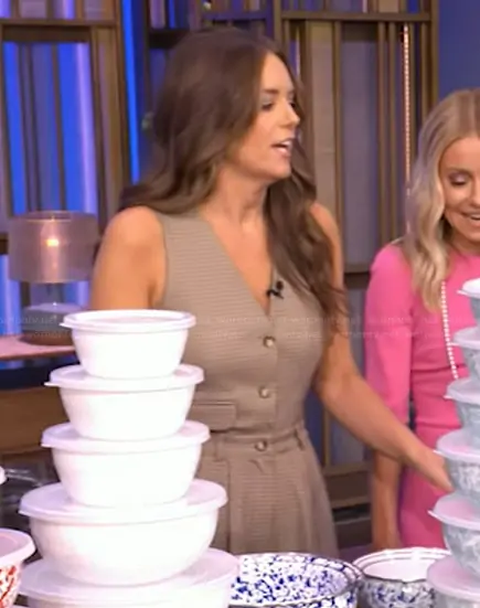 on Live with Kelly and Mark on Disney ABC Home Entertainment was spotted wearing this plaid sleeveless jumpsuit on Live with Kelly and Mark on Oct 10 2025's episode. 's Jumpsuit is the The Avery Wide-Leg Pleated Jumpsuit by Maeve.