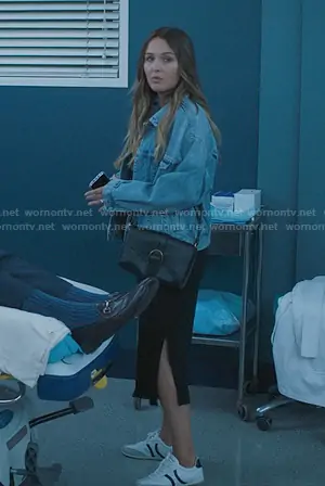 Jo Wilson (played by Camilla Luddington) on Greys Anatomy on ABC was spotted wearing this leather crossbody bag and sneakers on Greys Anatomy on episode 'Only the Strong Survive' (22x01) in Oct 2025. Jo's Bag is the Sequoia Leather Crossbody Bag in Black by Etienne Aigner . Jo's Shoes is the Jogger Low Lace-Up Sneaker in Calfskin & Suded Calfskin by Celine.