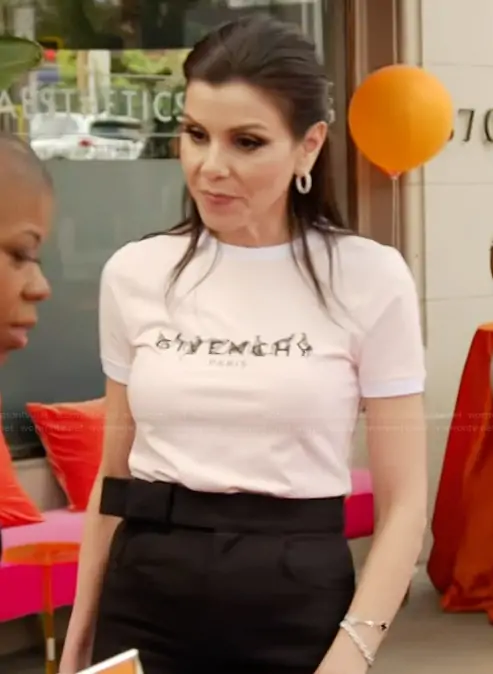 Heather Dubrow on The Real Housewives of Orange County on Bravo was spotted wearing this printed tee on The Real Housewives of Orange County on episode 'Hoedown Throwdown' (19x14) in Oct 2025. Heather's Top is the Logo-print T-shirt by Givenchy.