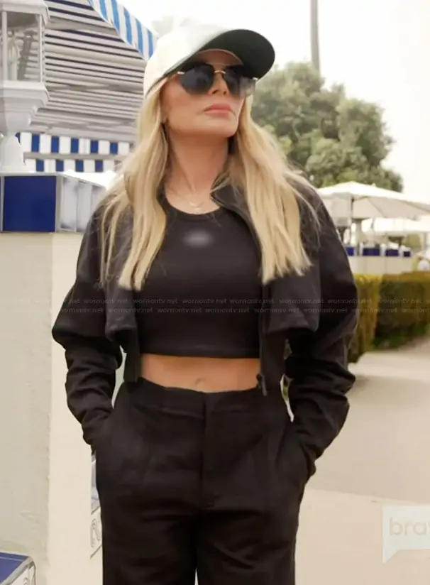 Tamra Judge on The Real Housewives of Orange County on Bravo was spotted wearing this black tank and jacket on The Real Housewives of Orange County on episode 'Hoedown Throwdown' (19x14) in Oct 2025. Tamra's Top is the Aspire Tank by Alo . Tamra's Jacket is the Point Moto Jacket by Alo . Tamra's Pants is the High-Waist Dreamscape Trouser by Alo . Tamra's Sunglasses is the Lenox 62mm Oversize Polarized Gradient Aviator Sunglasses by Diff . Tamra's Hat is the Caviar Cowboy Cap by Eleven Eleven.