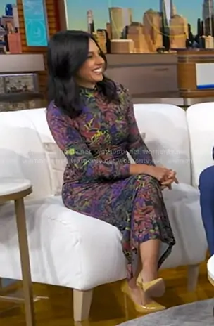 Dr. Tara Narula on Good Morning America on ABC was spotted wearing this printed mesh dress on Good Morning America on Oct 10 2025's episode. Tara's Dress is the Alonia Mesh Mock Neck Dress by Untitled in Motion.