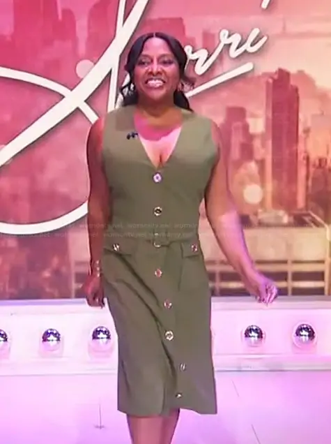 Sherri Shepherd on Sherri on FOX was spotted wearing this green button front dress on Sherri on Oct 13 2025's episode. Sherri's Dress is the x REVOLVE Sonata Dress by Amanda Uprichard.