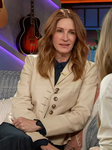Me+Em Beige Leather Fitted Blazer worn by Julia Roberts on The Kelly Clarkson Show