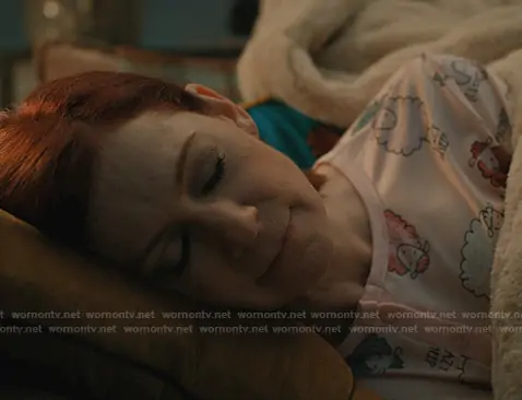 Elsbeth Tascioni (played by Carrie Preston) on Elsbeth on CBS was spotted wearing this pink sheep print pajamas on Elsbeth on episode 'Yes, And...' (3x01) in Oct 2025.