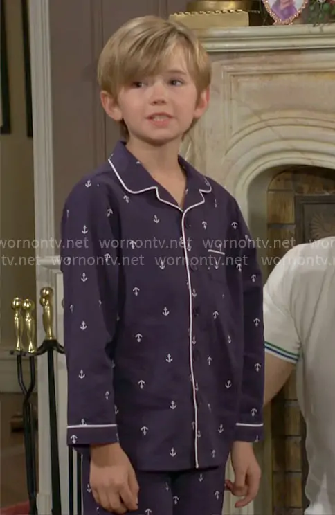 Harrison Abbott (played by Redding Munsell) on The Young and the Restless on CBS was spotted wearing this anchor print pajamas on The Young and the Restless on Oct 13 2025's episode. 's Pajamas is the Twill Pajama Set in Portsmouth Anchors by Petite Plume.