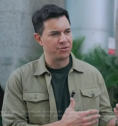 on Today on NBC was spotted wearing this green stripe shirt jacket on Today on Oct 14 2025's episode. 's Shirt is the Herringbone Twill Shirt by RRL.