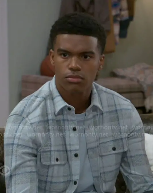 Tyrell Richardson (played by Jaden Lucas Miller) on Beyond the Gates on CBS was spotted wearing this light blue plaid shirt on Beyond the Gates on Oct 14 2025's episode. Tyrell's Shirt is the Legend Shirt in Maine Sky Plaid by Faherty.