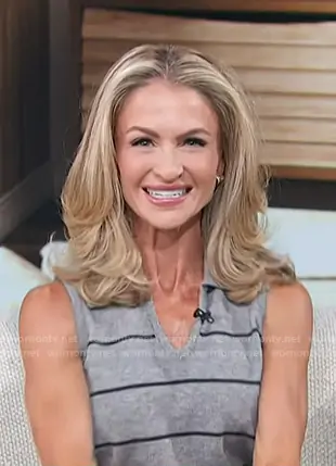 on Access Hollywood on NBC was spotted wearing this grey striped sleeveless top on Access Hollywood on Oct 14 2025's episode. 's Top is the Sloane Collared Tank by French Connection.