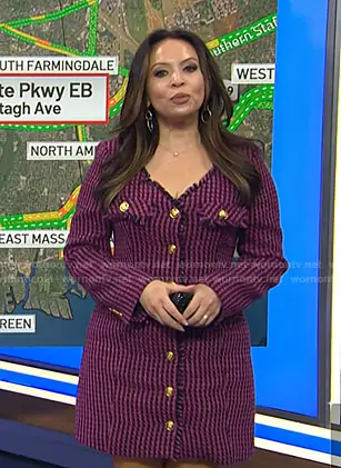 Adelle Caballero on Today on NBC was spotted wearing this pink houndstooth tweed dress on Today on Oct 15 2025's episode. Adelle's Dress is the Long Sleeve Tweed Mini Dress by Derek Lam 10 Crosby.