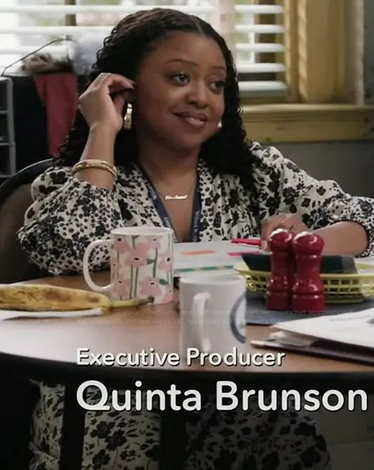 Janine Teagues (played by Quinta Brunson) on Abbott Elementary on ABC was spotted wearing this floral print midi dress on Abbott Elementary on episode 'Game Night' (5x04) in Oct 2025. Janine's Dress is the Minary Midi Dress by Ba&sh.