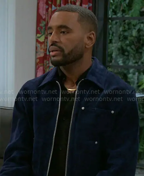 Andre Richardson (played by Sean Freeman) on Beyond the Gates on CBS was spotted wearing this navy blue suede jacket on Beyond the Gates on Oct 16 2025's episode. Andre's Jacket is the Split Suede Leather Jacket by Zara.