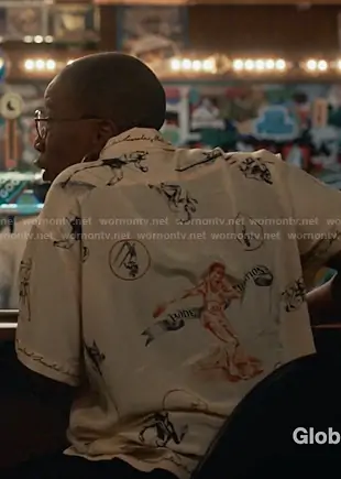 Henrietta Wilson (played by Aisha Hinds) on 9-1-1 on ABC was spotted wearing this white print short sleeve shirt on 9-1-1 on episode 'Spiraling' (9x02) in Oct 2025. Hen's Top is the Games Shirt by Bode.
