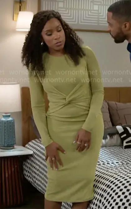 Naomi Hamilton Hawthorne (played by Arielle Prepetit) on Beyond the Gates on CBS was spotted wearing this green twist front dress on Beyond the Gates on Oct 16 2025's episode. Naomi's Dress is the Twist-detail maxi dress by Nanushka .