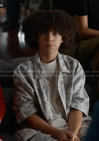 Denny Wilson (played by Declan Pratt) on 9-1-1 on ABC was spotted wearing this abstract print shirt and pants on 9-1-1 on episode 'Spiraling' (9x02) in Oct 2025. 's Shirt is the Washed Abstract Print Overshirt by Zara . 's Pants is the Abstract Print Carpenter pants by Zara.